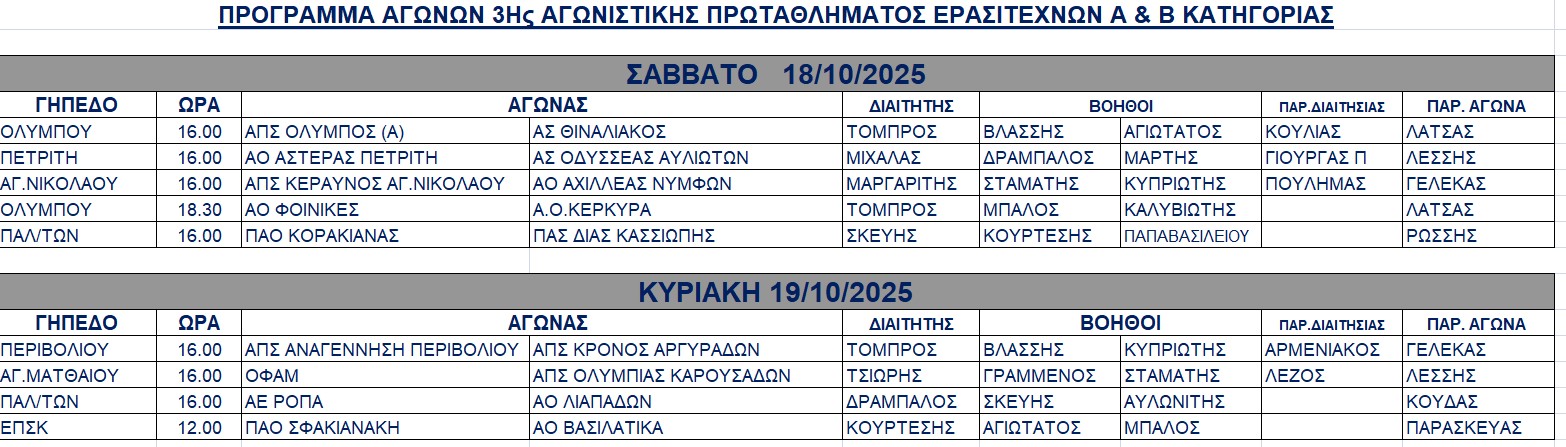 Οι Διαιτητές και παρατηρητές των αγώνων 18-19/10/2025
