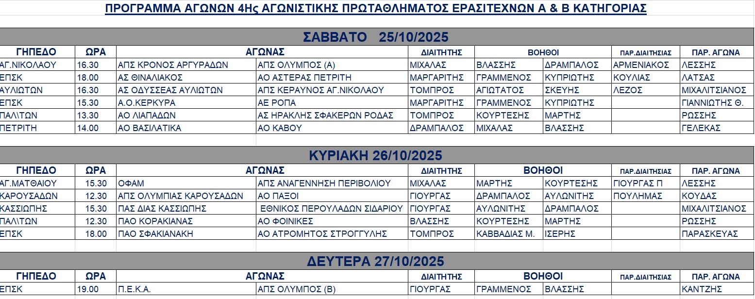 Οι διαιτητές των αγώνων 25,26 και 27/10/2025