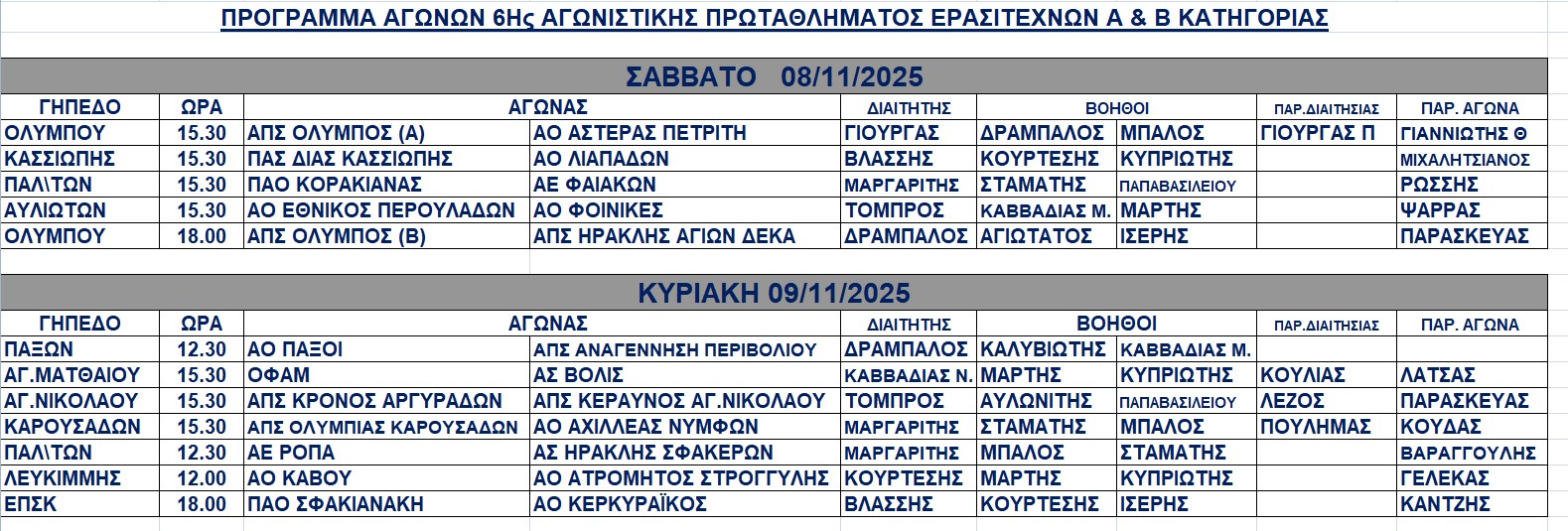 Οι διαιτητές των ανδρικών αγώνων 8-9/11/2025