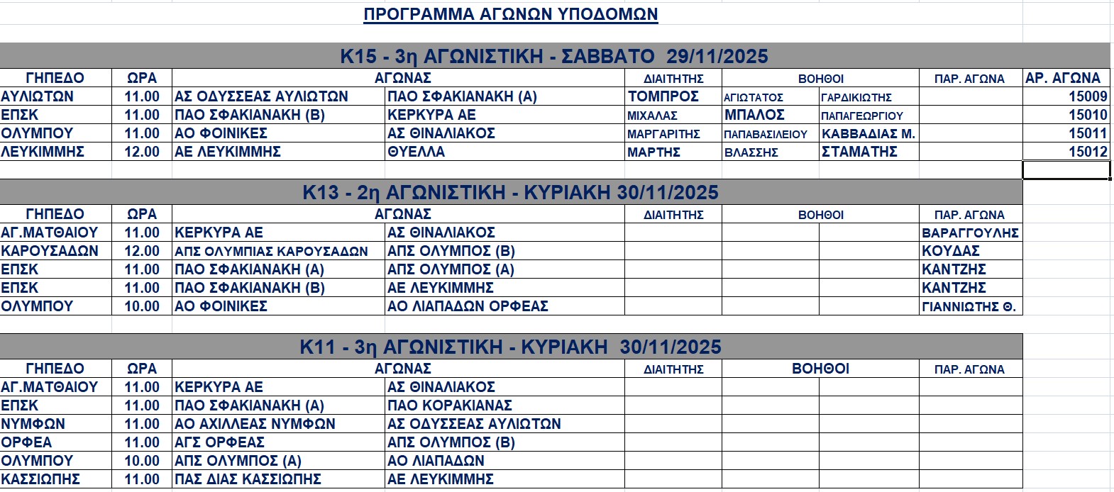 Οι διαιτητές των αγώνων 29-30/11/2025