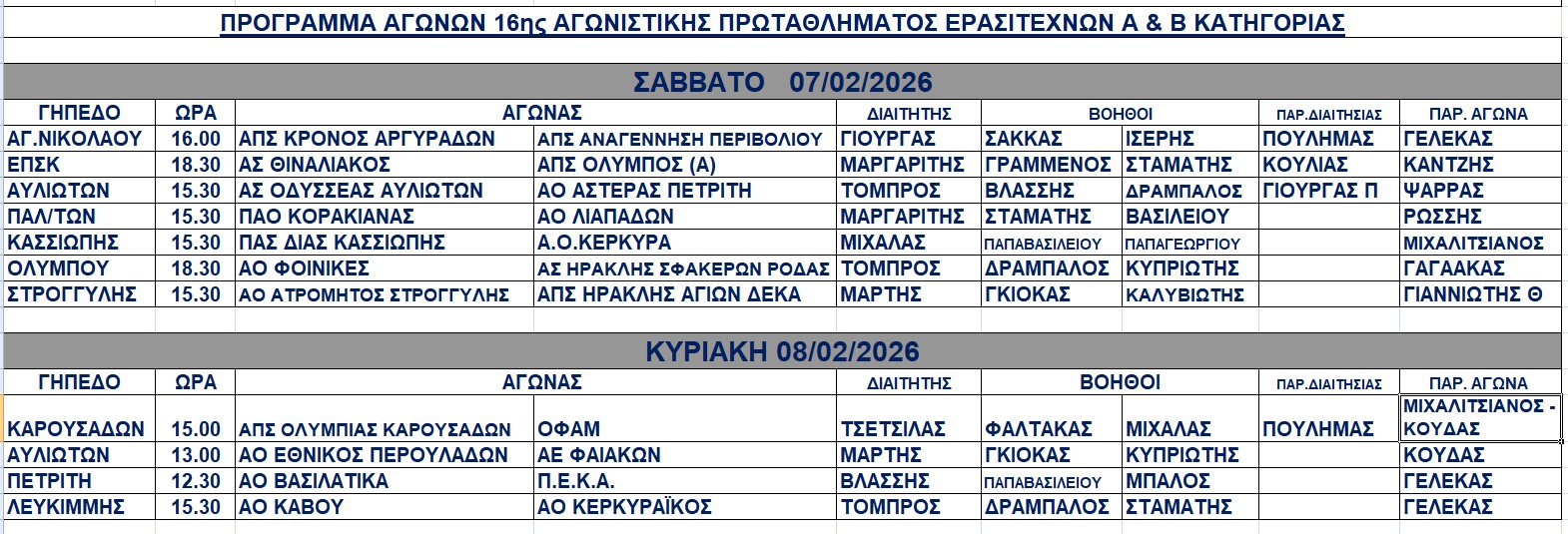Οι διαιτητές και οι παρατηρητές των αγώνων 10-11/1/2026