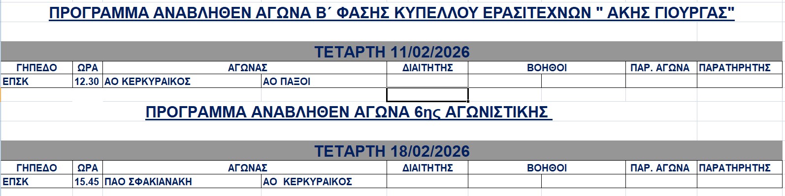 Πρόγραμμα αγώνων από αναβολή 11 και 18/2/2026
