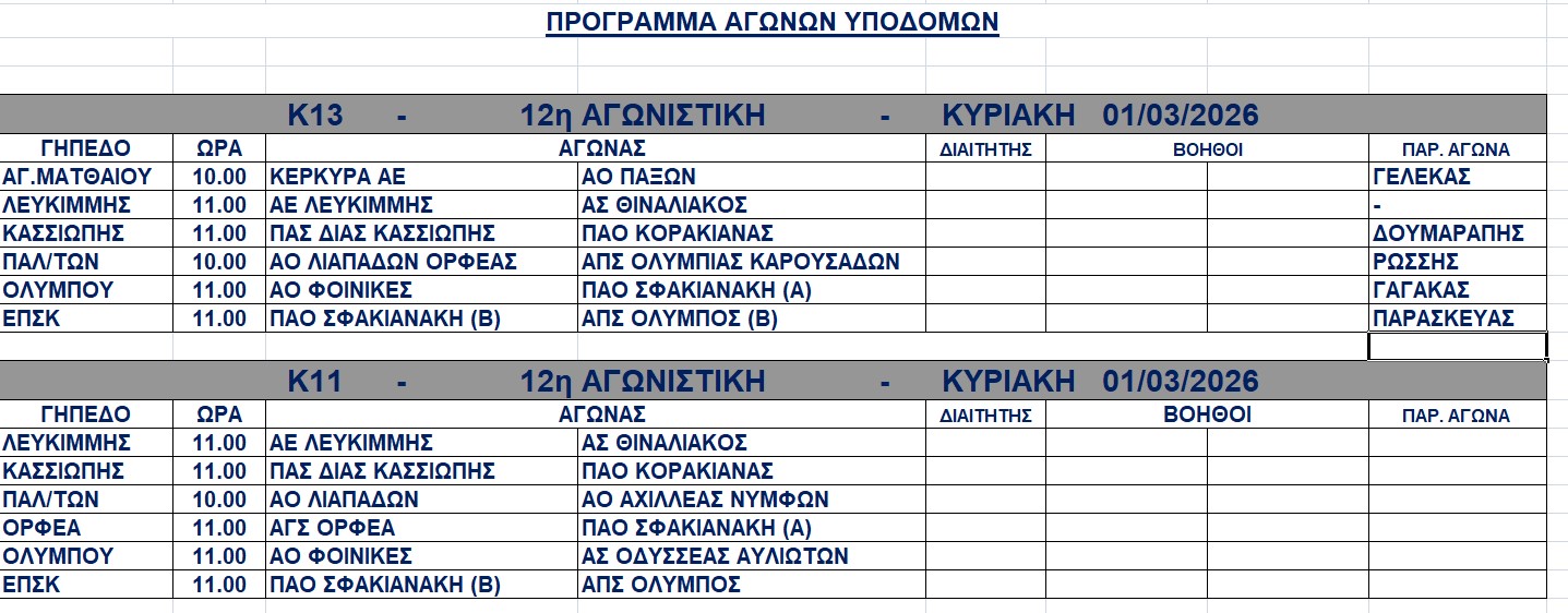 Πρόγραμμα αγώνων 7-8/2/2026 (ορθή επανάληψη)