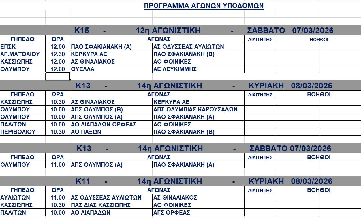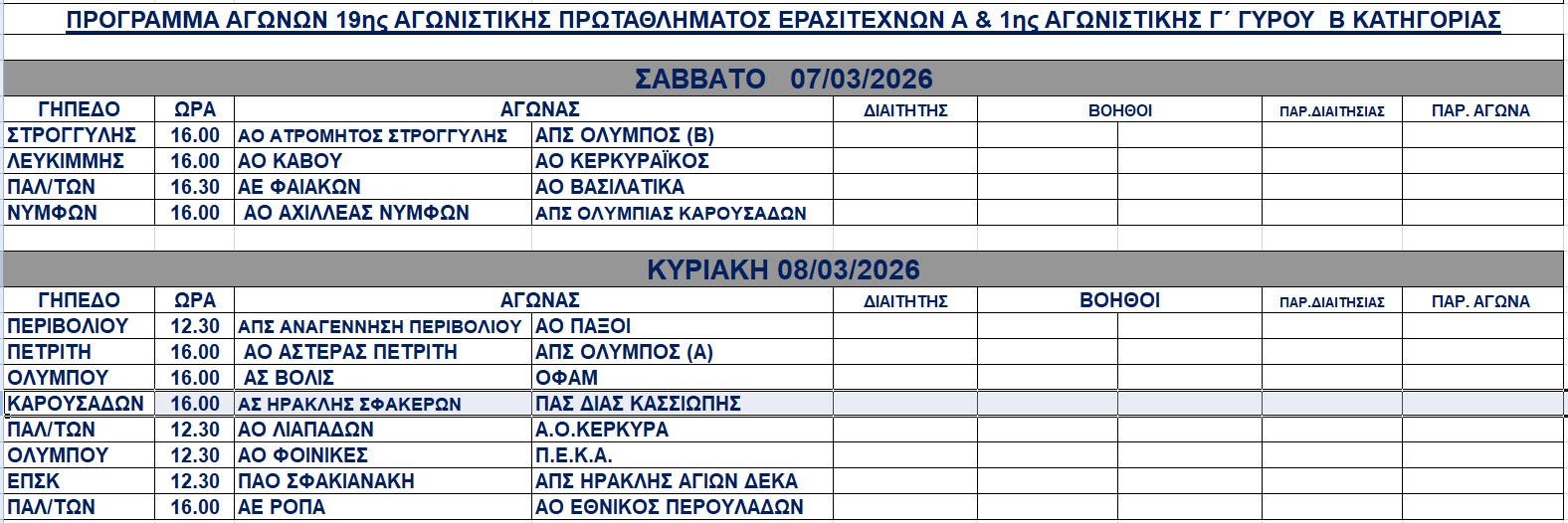 Πρόγραμμα αγώνων Σαββατοκύριακου 7-8/3/2026