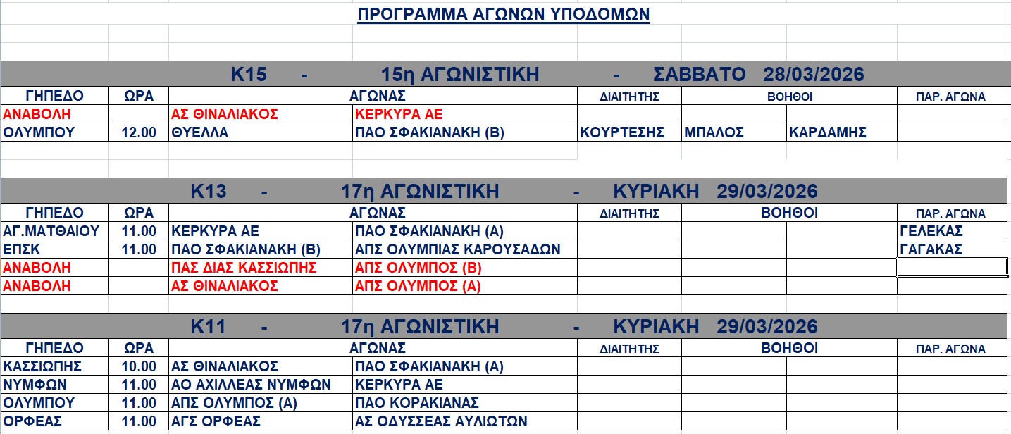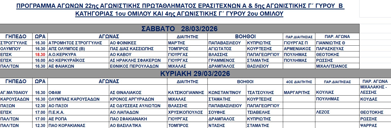 Διαιτητές και παρατηρητές αγώνων 28-29/3/2026