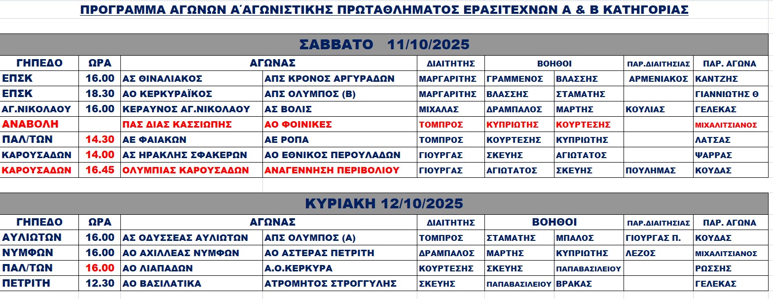Οι διαιτητές και οι παρατηρητές των αγώνων 11-12/10/2025