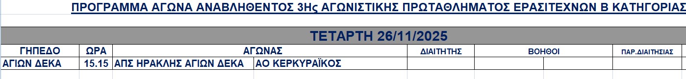 Πρόγραμμα αγώνων από αναβολή (26/11)