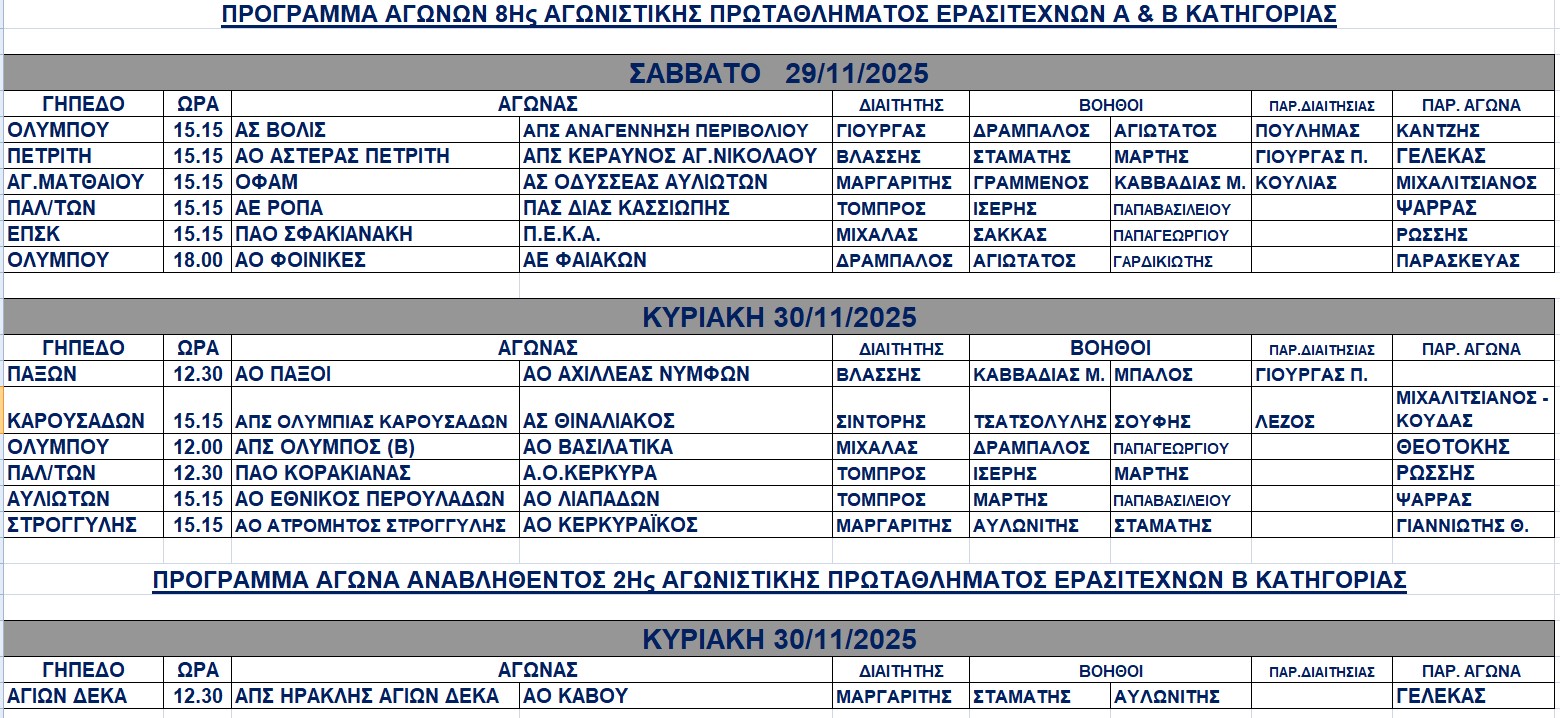 Οι διαιτητές των αγώνων 29-30/11/2025