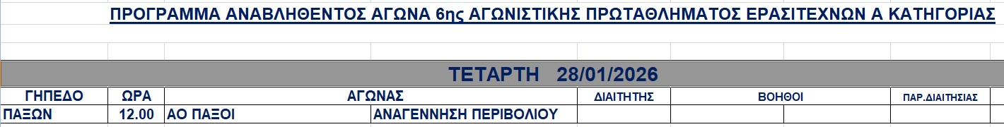 Πρόγραμμα αγώνα Τετάρτης 28/1/2026