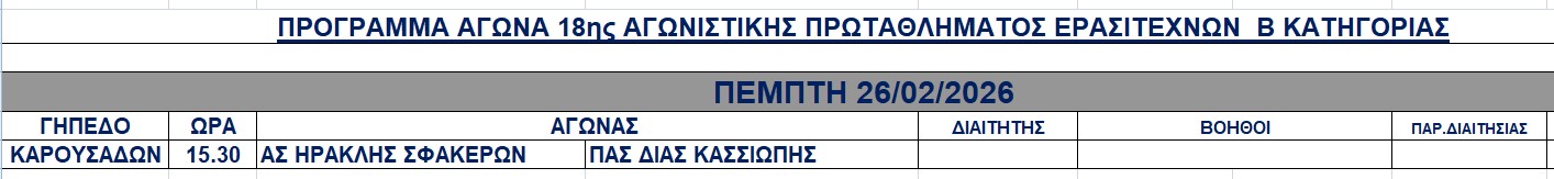 Πρόγραμμα αγώνων 31/1 και 1-2/2/2026